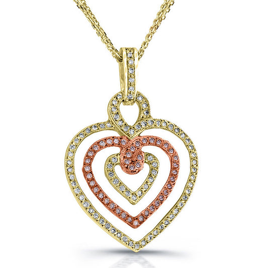 Vintage Style Tri-Heart Shape Engraved Pink Diamond Pendant